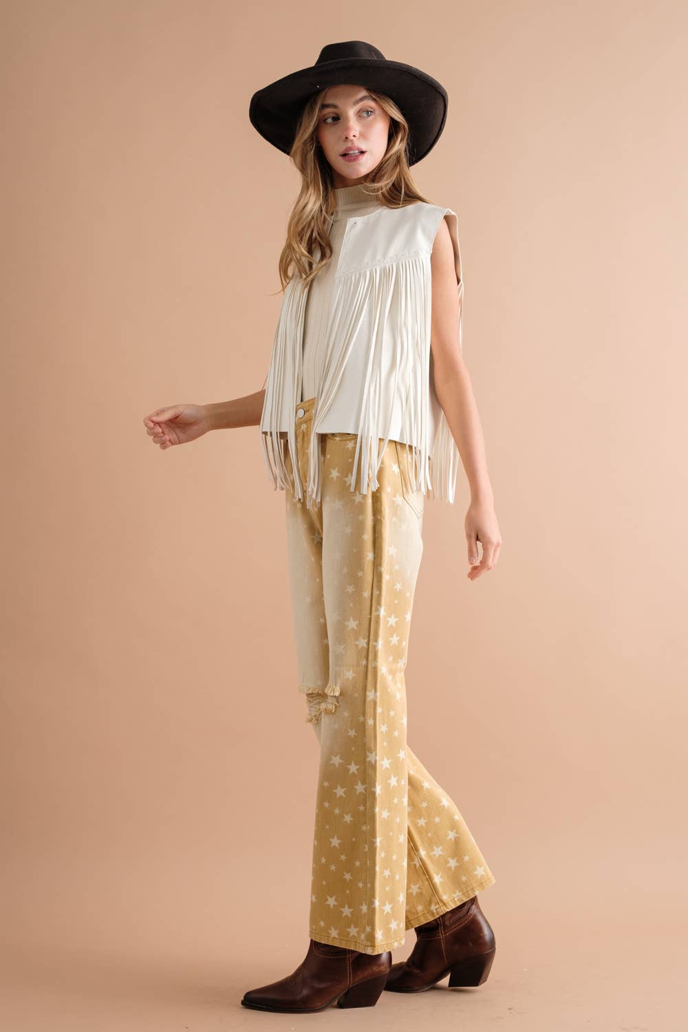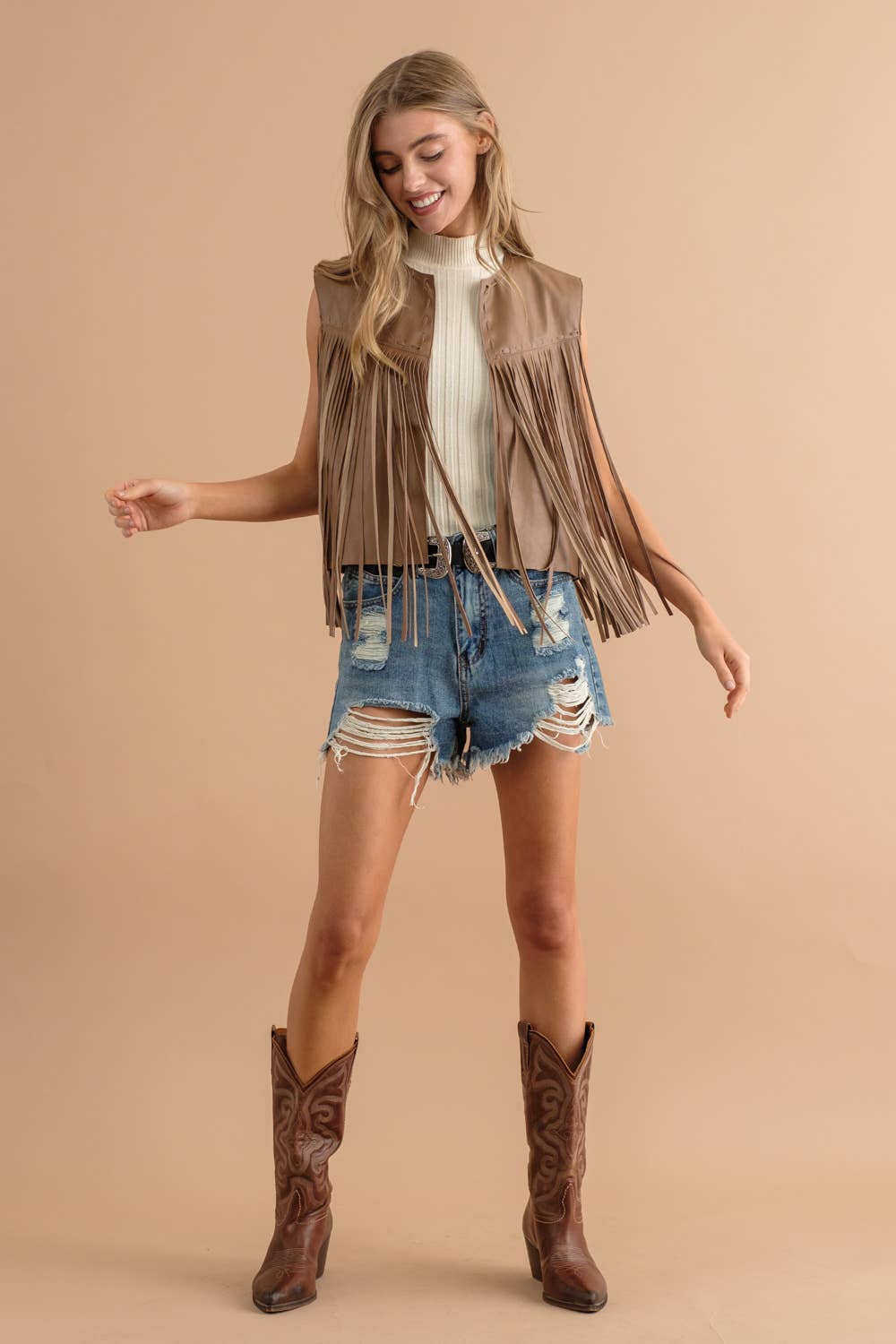 Faux Leather Fringe Braided Yoke Crop Waist Vest