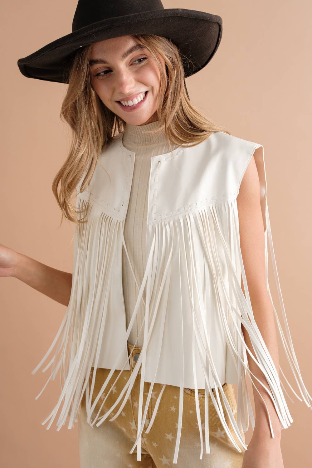 Faux Leather Fringe Braided Yoke Crop Waist Length Vest
