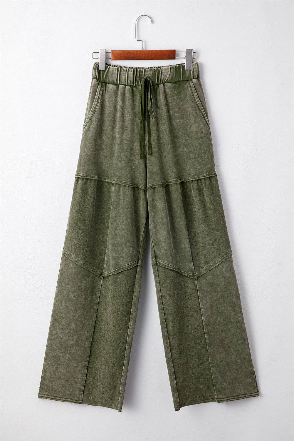 Mineral Wash Patchwork Wide Leg Drawstring Pants: Vineyard Green / M