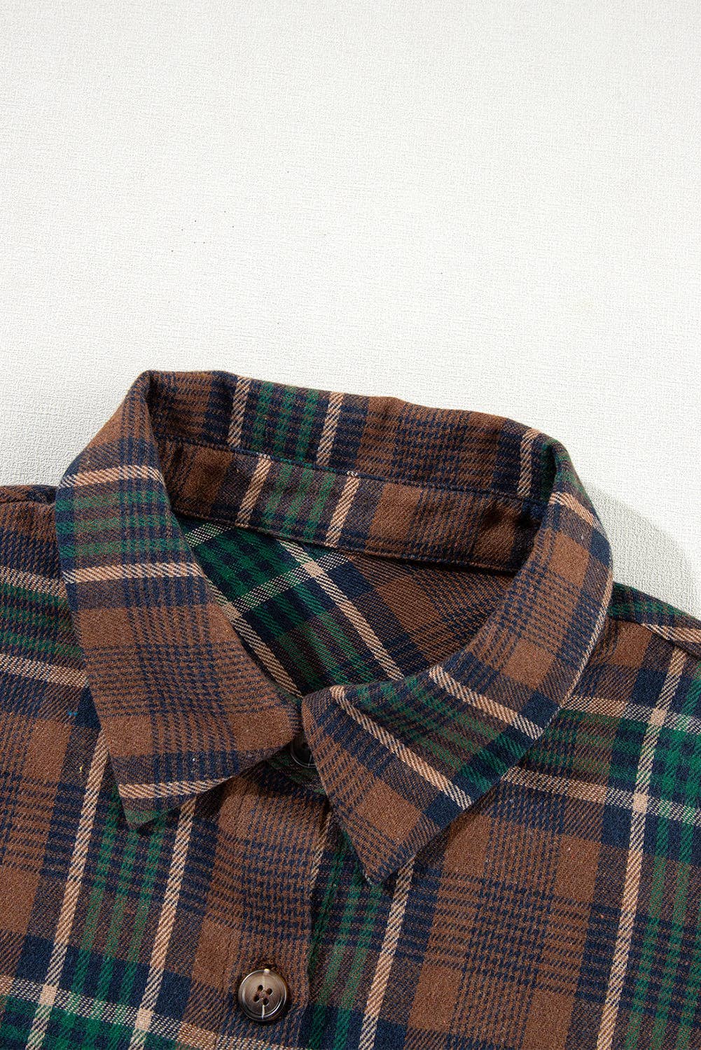 Plaid Chest Pockets Buttoned Shirt Jacket: Brown / S