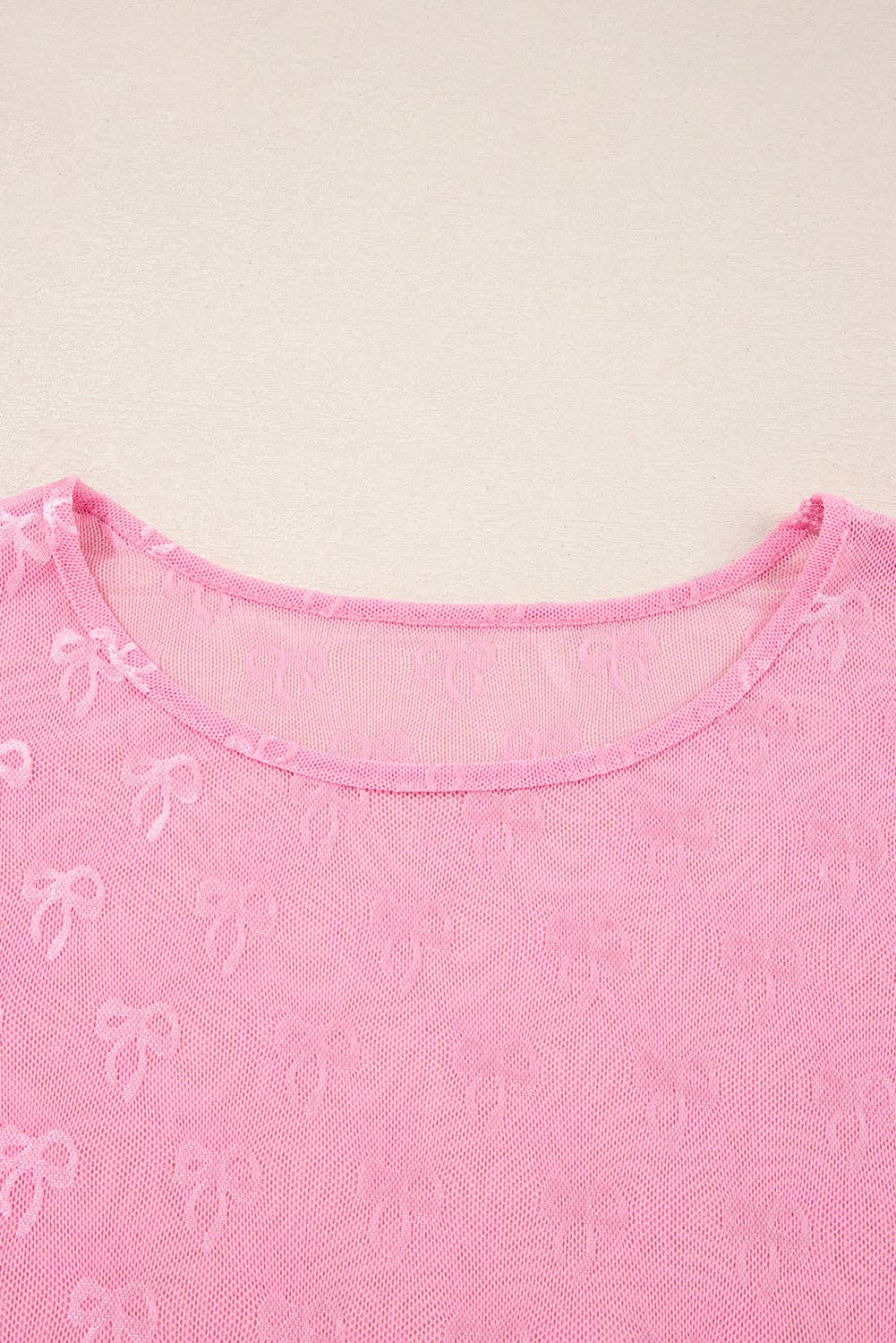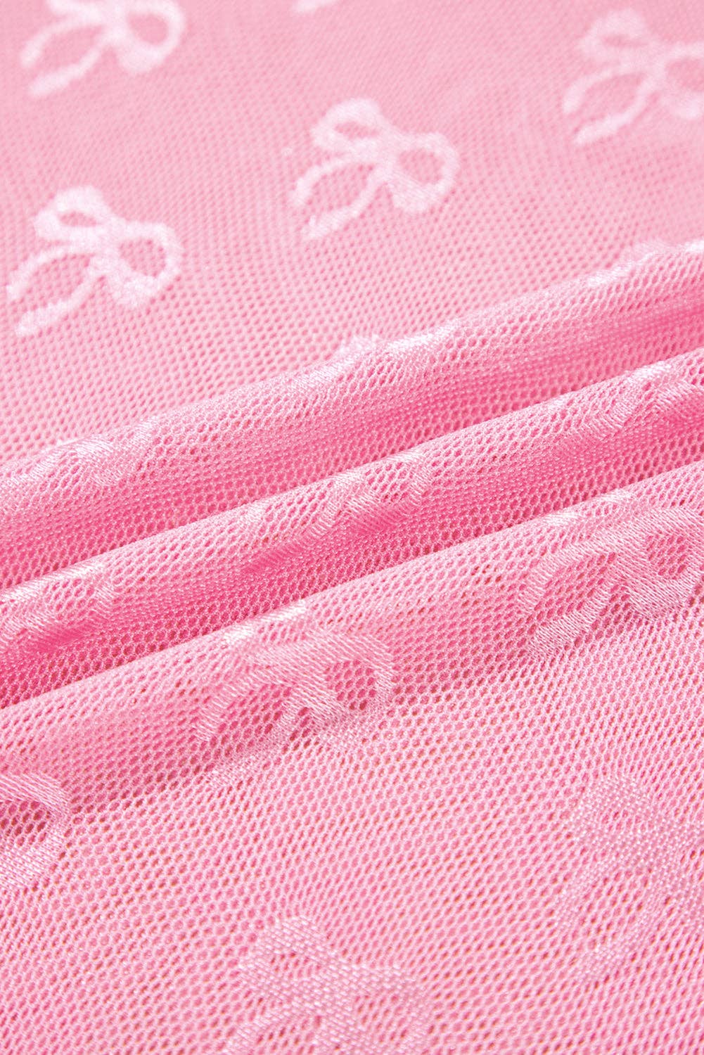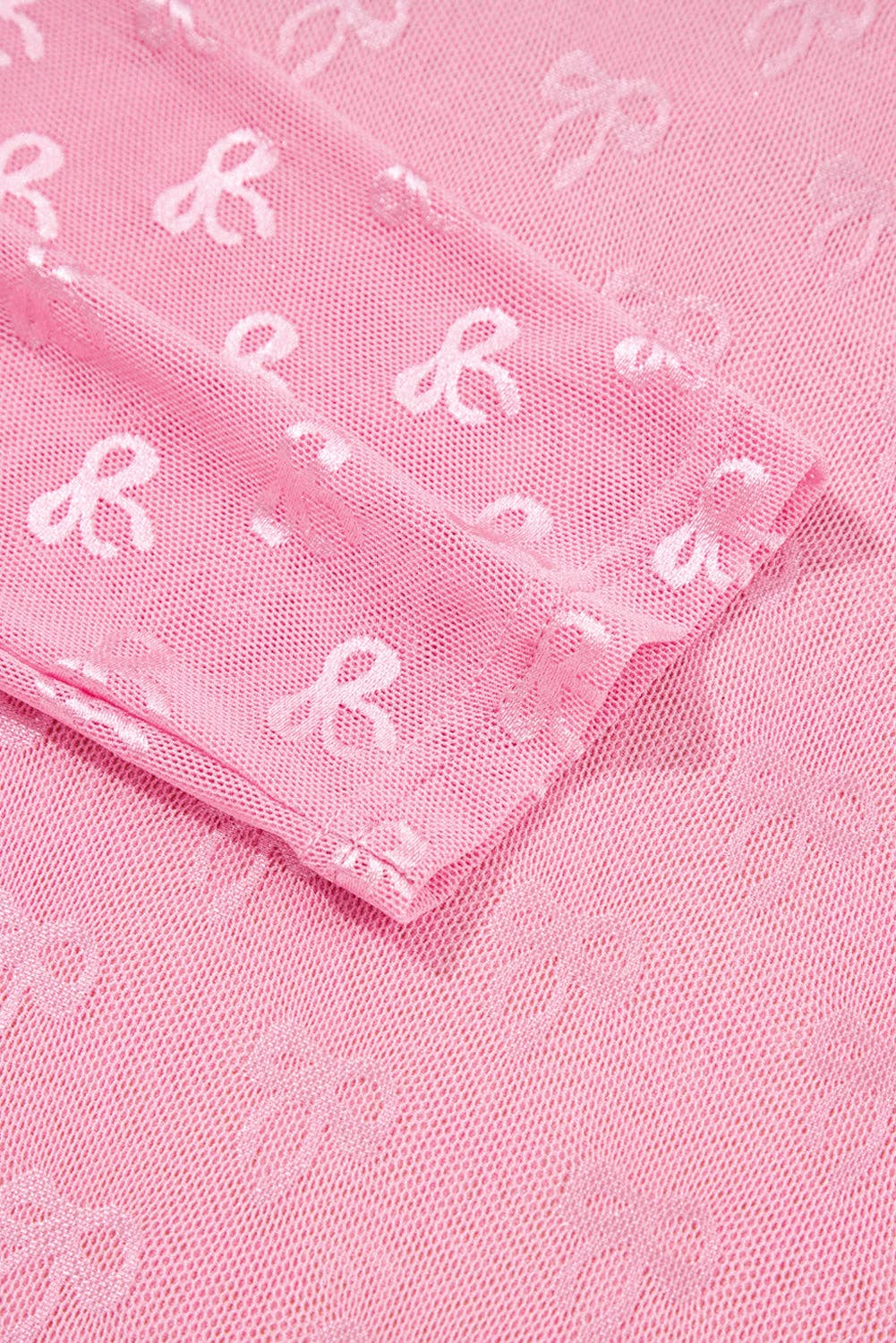 Plus Size Bow Embroidered Long Sleeve Mesh Top